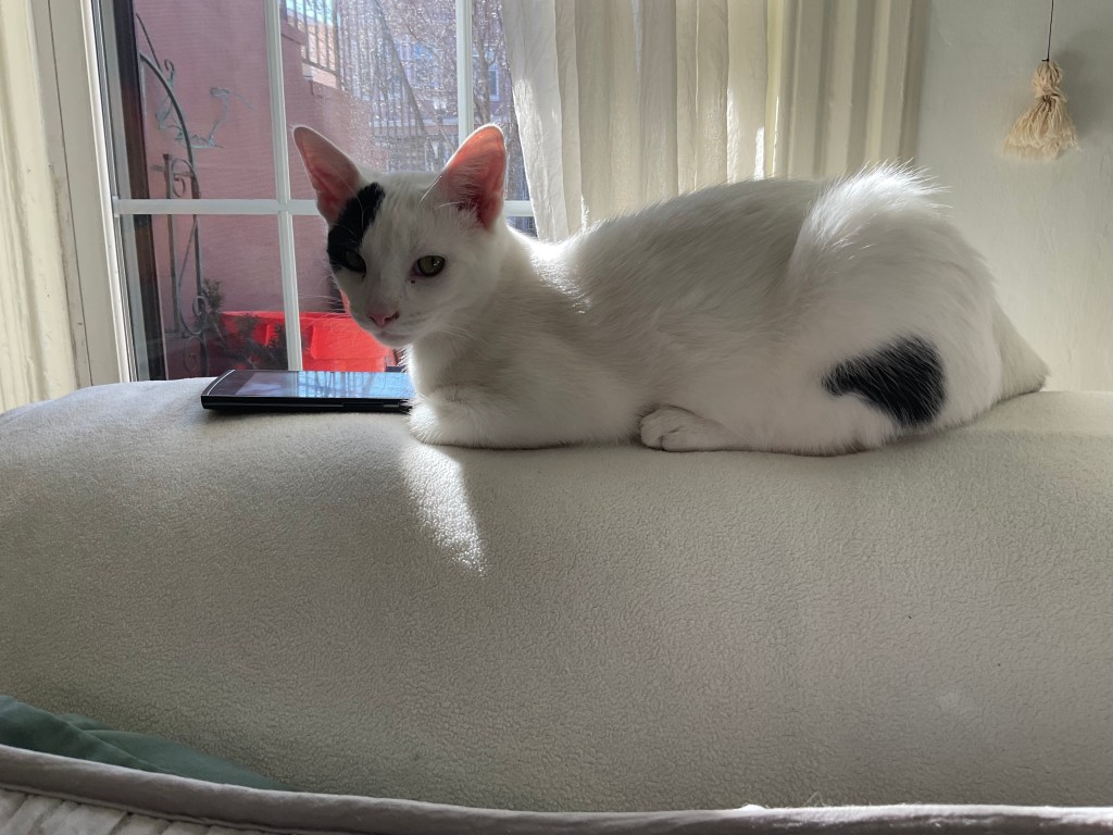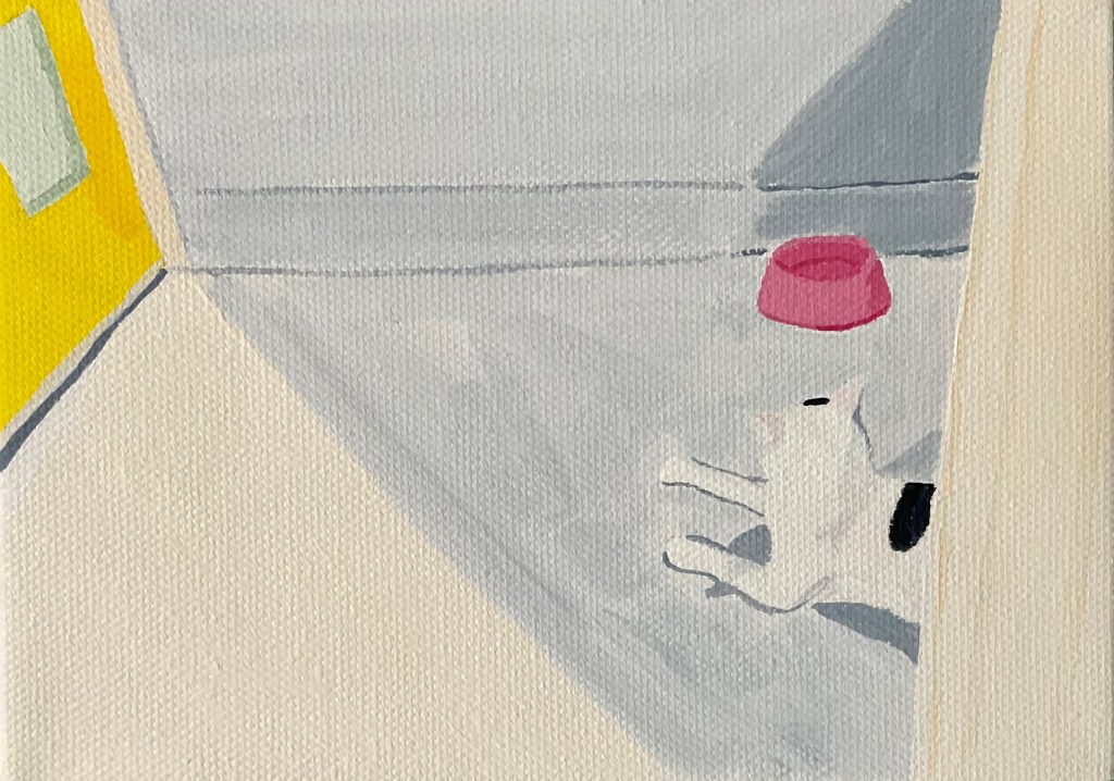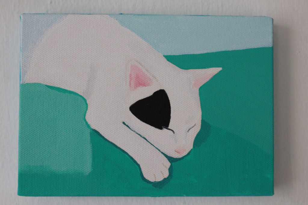 There are certain subjects I gravitate towards when painting like birds or female portraits that capture an emotion that moves me, or currently my rescue cat Mr. Tom Spots has been my muse.