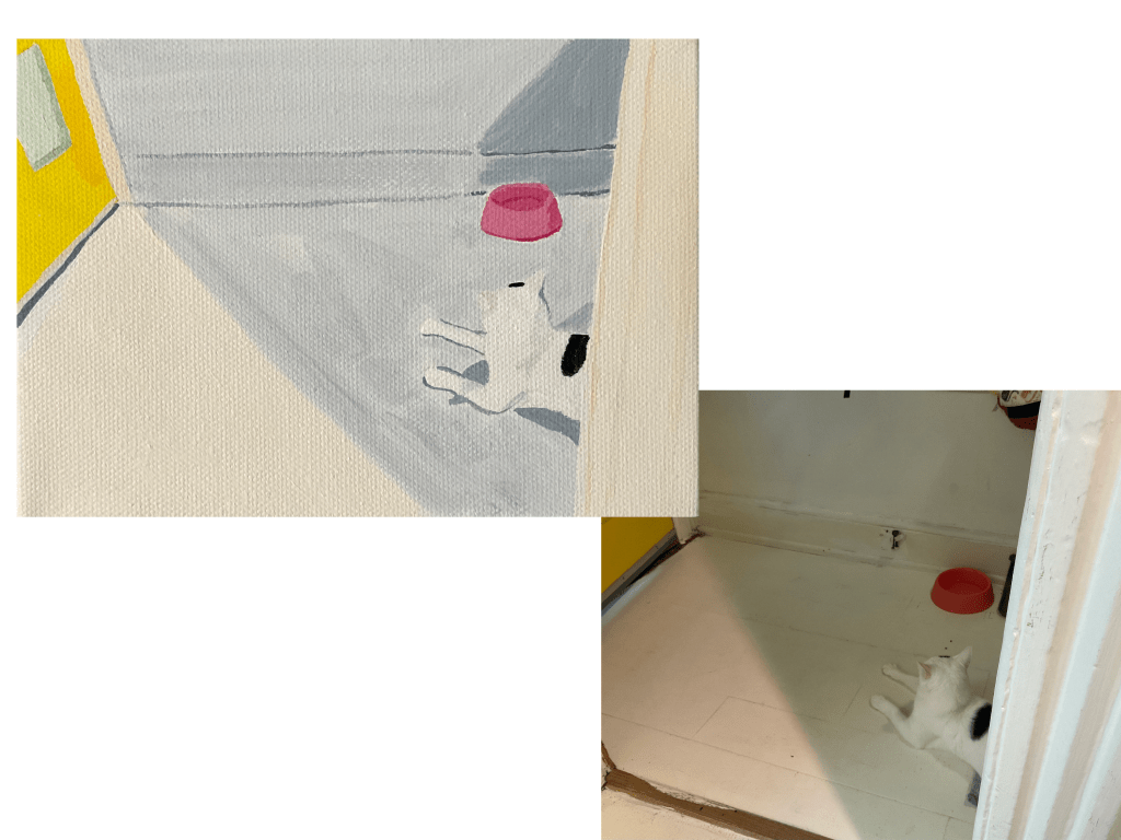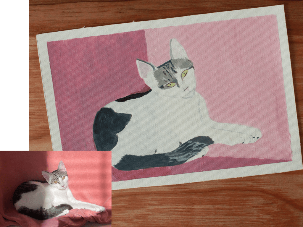 Since beginning painting I find that there are many times I’ll see something in real time and think what a beautiful painting that would be. There have been times I have my camera with me and have taken a picture to paint later. Like this one of my rescue cat Major Tom and one of my other rescue cat Kip.